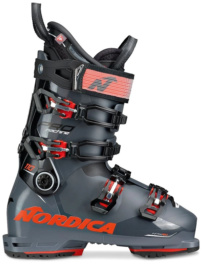 De Nordica Pro Machine 110 (GW) is een skischoen met een laag volume, geschikt voor smalle voeten of voor skiers die op zoek zijn naar een strakke fit.