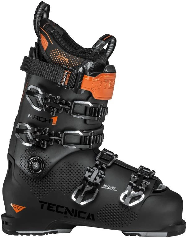De Tecnica Mach1 Pro MV is een skischoen met een medium volume, geschikt voor gemiddelde voeten of voor skiers met een brede voet die op zoek zijn naar een strakkere fit.